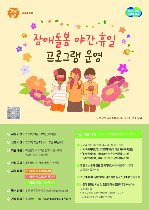 °æ±âµµ´Â 2¿ù 1ÀϺÎÅÍ 20ÀϱîÁö µµ³» Àå¾ÖÀκ¹Áö½Ã¼³ ¹× ´Üü¸¦ ´ë»óÀ¸·Î ¡®Àå¾Öµ¹º½ ¾ß°£․ÈÞÀÏ ÇÁ·Î±×·¥¡¯ ¿î¿µ±â°üÀ» ¸ðÁýÇÑ´Ù°í ¹àÇû½À´Ï´Ù. ±âÁ¸ µ¹º½±â°üµéÀº ÆòÀÏ ¿ÀÀü 9½ÃºÎÅÍ ¿ÀÈÄ 6½Ã±îÁö Á¦ÇÑµÈ ½Ã°£¿¡¸¸ ¿î¿µÇϰí, Á¤±âÀû µ¹º½À̶ó´Â Á¦ÇÑµÈ ¼­ºñ½º¸¦ Á¦°øÇϰí, ÁßÁõÀå¾Ö Áß½ÉÀ¸·Î ´ë»óÀÚ¸¦ ÇÑÁ¤ÇÏ´Â µî µ¹º½ÀÇ °ø¹éÀÌ ¹ß»ýÇÏ´Â ±¸Á¶¿´½À´Ï´Ù.